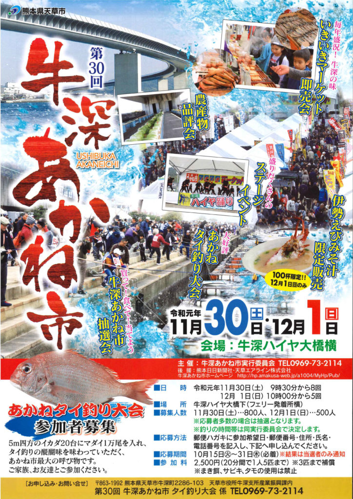 目玉は鯛を持ち帰れる釣り大会 今年も牛深あかね市が開催されます!