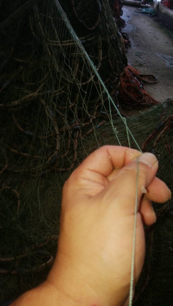 牛深の漁師さん達が使用している網の大きさは、横3メートル、縦900メートル。