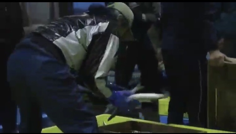 セリ落とした魚は、すばやく積み込みに入ります。
