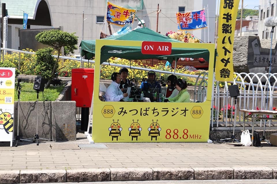 天草のコミュニティFMの「みつばちラジオ」も実況中継してらっしゃいました。