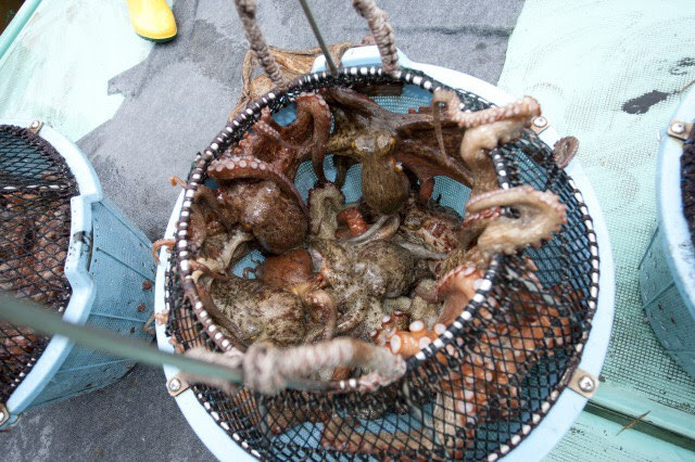 網漁と比べると、タコの身体を傷つけることがなく、綺麗で新鮮なタコを水揚げできます。
