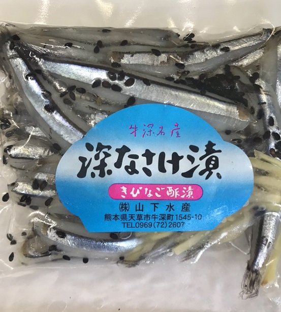 牛深水産がオススメする山下水産様の深なさけ漬 きびなご酢漬。