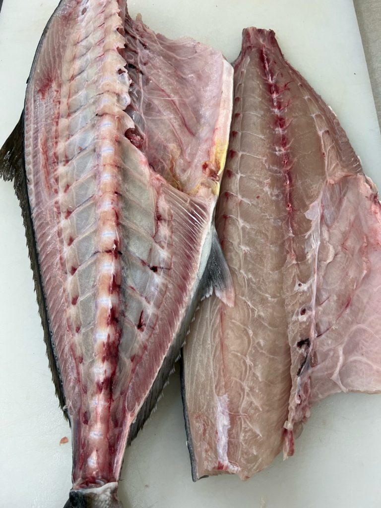 旬のカンパチは「腹側」はもちろんですが「背側」の方まで脂のりがよくなってきます。