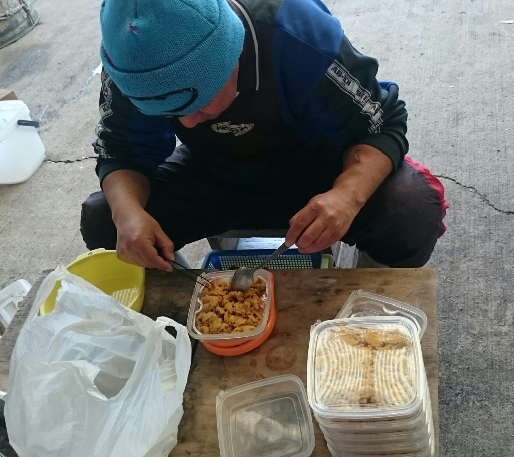 天草牛深の白ウニは漁師がひとつひとつ丁寧に仕上げていきます。
