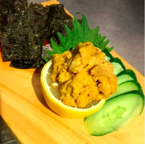 そして、ウニときゅうりを有明海苔で包んで、ちょっと醤油をつけて食べるのも絶品!究極至極の味わいとなります。
