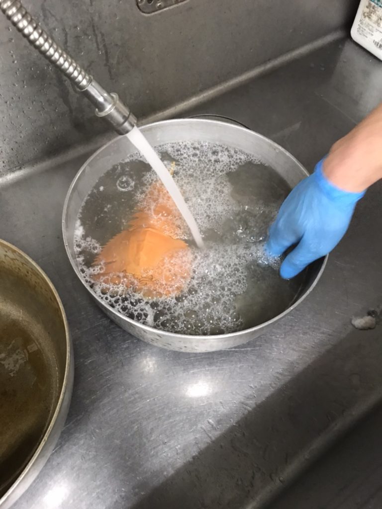 粗熱が取れる前に陸上げしてしまうと綺麗な甲羅が白くなってしまいます。