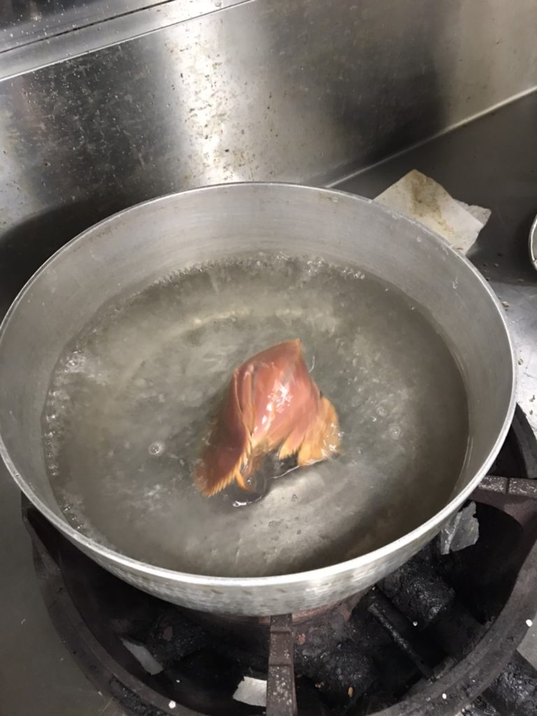 塩水(塩3%程度)を沸騰させ、ウチワエビを投入