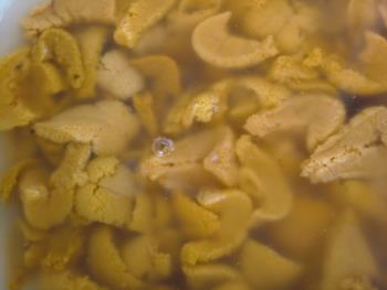 採れたての赤ウニは、漁師さん達によって一つ一つ手作業で加工されます。