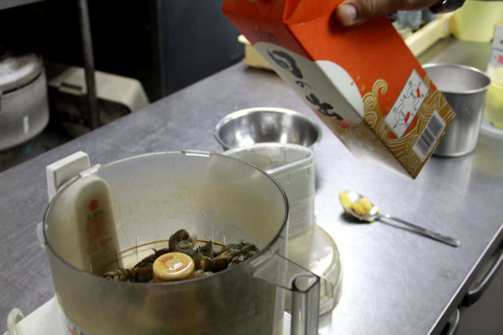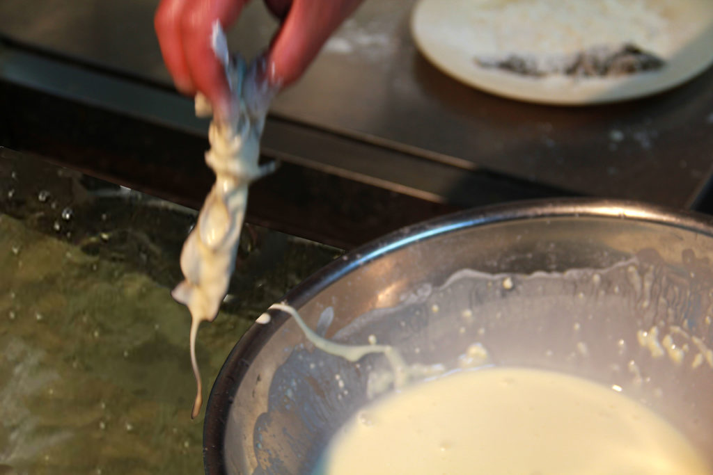 あまり衣が固くなるとシャクの殻の食感が損なわれるので