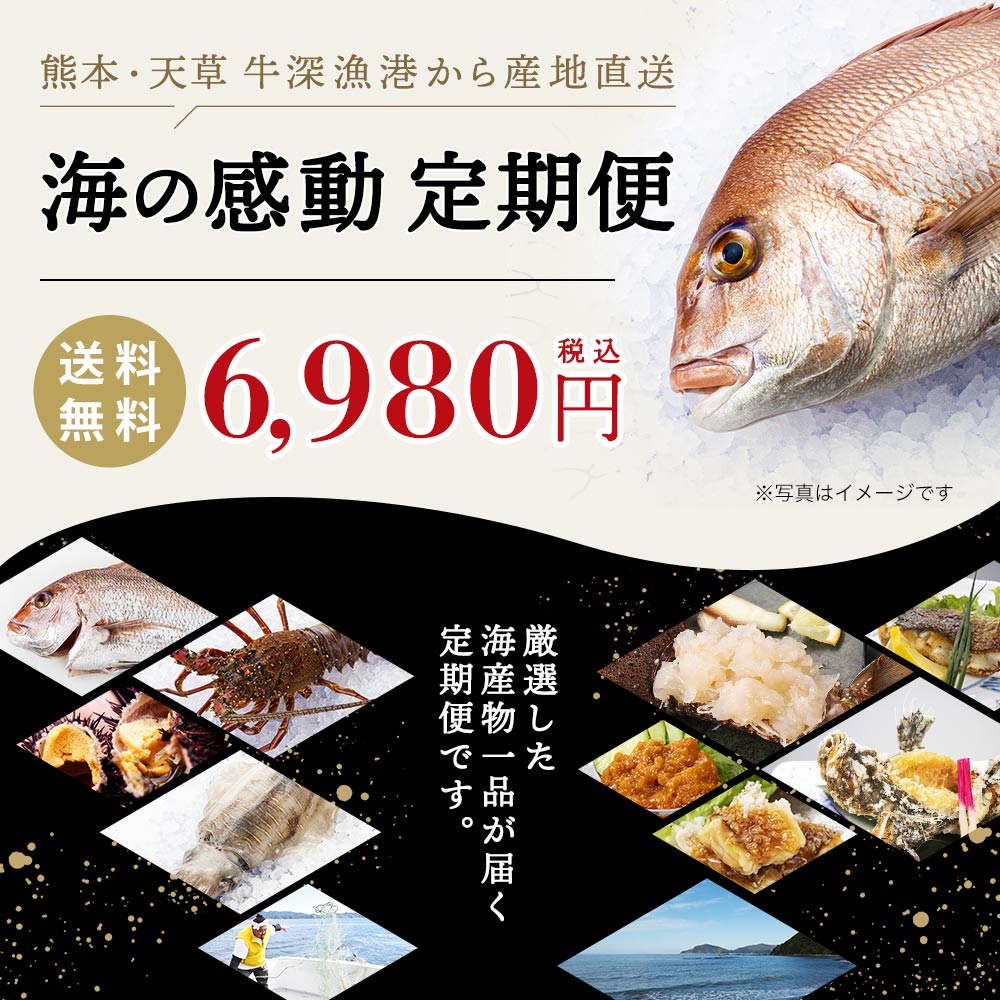 牛深水産がプロの目で厳選した逸品を毎月一回お届けするサービスです。