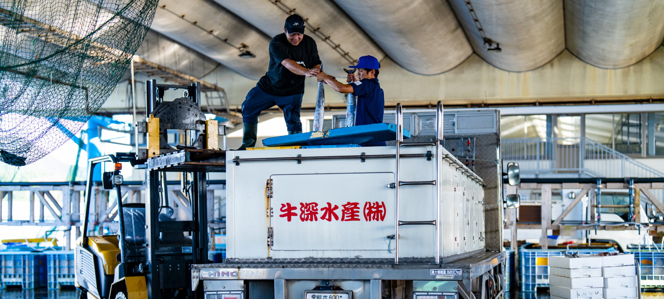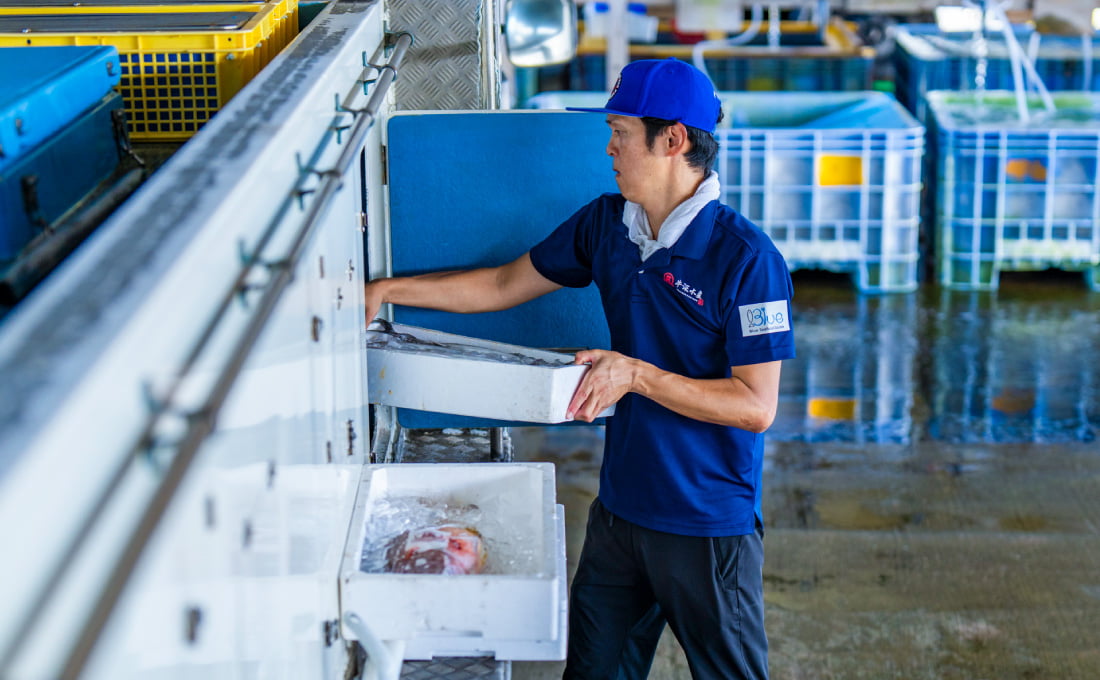 イケスには活水器「ディレカ」で作った活水を使用し、滅菌・制菌を行いながら輸送します。
